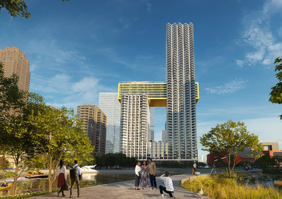 Voor de toekomstige bewoners komen er op meerdere plekken in het gebouw gezamenlijke ruimtes, waaronder gemeenschappelijke woonkamers, een volautomatische parkeergarage voor auto’s en een collectieve fietsenstalling voor 1.800 fietsen. Ook wordt er een dakterras aangelegd op 100 meter hoogte, grenzend aan een gemeenschappelijke woonkamer.